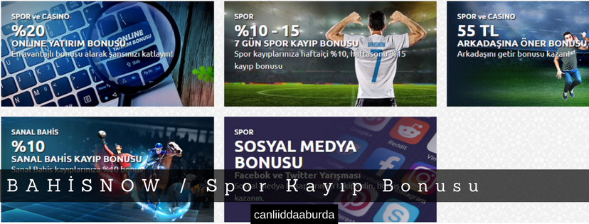 - Bahisnow %10-15 7 gün spor kayıp bonusu fırsatından yararlanmak için hesabınızda en fazla 5 TL bakiye bulunmalıdır.